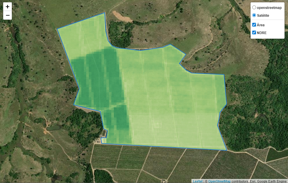 O satélite Sentinel-2 permite o monitoramento com imagens RGB ou índices de vegetação/espectrais. No sistema, estão disponíveis os índices NDVI, GNDVI, MSAVI2, NDRE, CCCI, NDWI, NDMI, NBR e TWI2. O módulo acompanha tutoriais e recomendações de uso de cada índice.