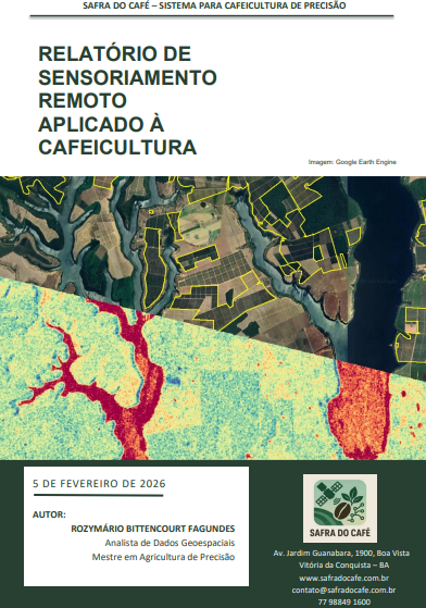 Safra do Café é um sistema de monitoramento remoto da cafeicultura que utiliza dados atualizados de satélite e informações climáticas para acompanhar a evolução das lavouras. O sistema permite visualizar a variabilidade da área de produção, identificar padrões espaciais, analisar o comportamento da lavoura ao longo do tempo e integrar amostras geolocalizadas de produtividade para gerar previsões da próxima safra por meio de inteligência artificial.